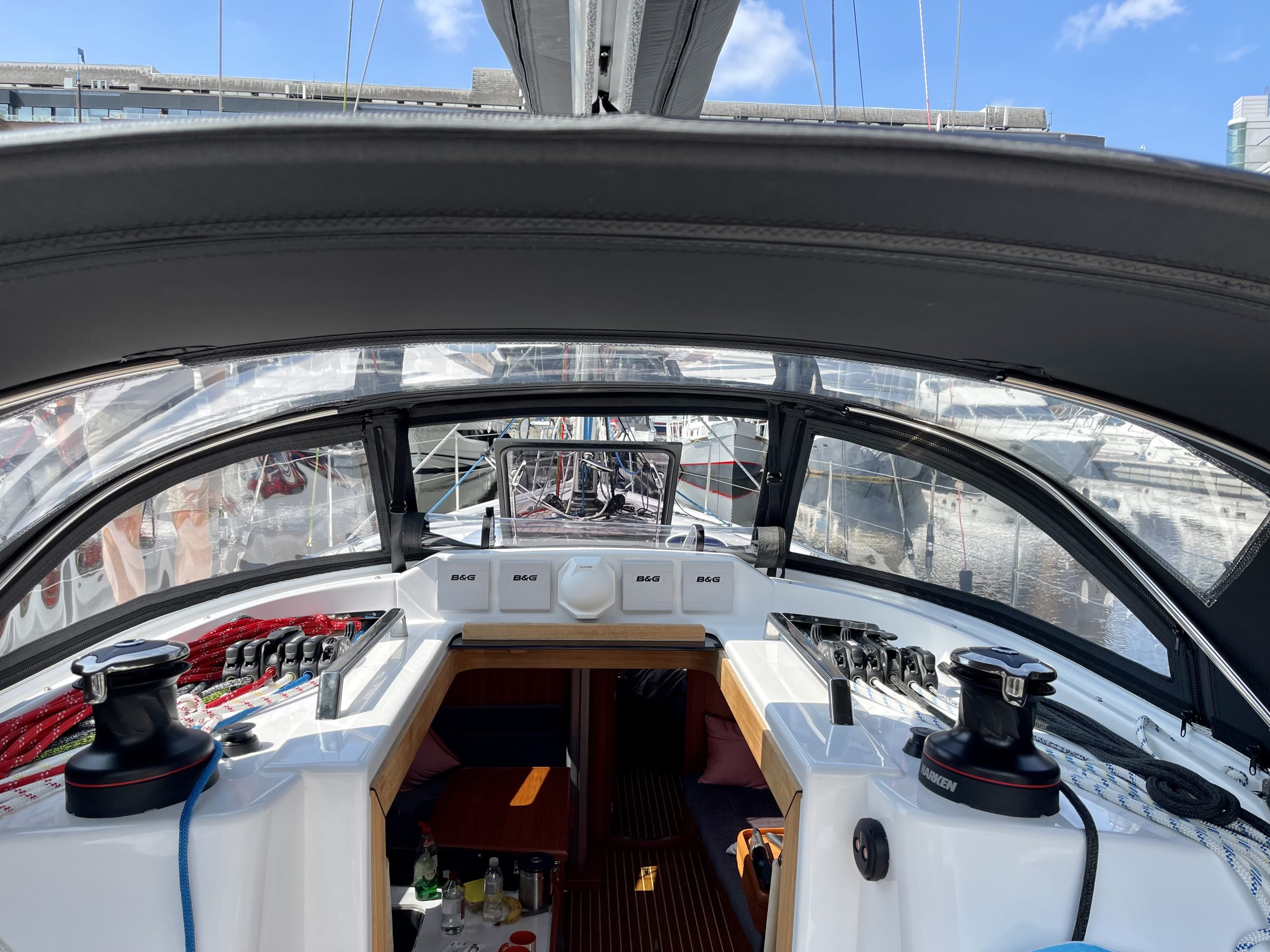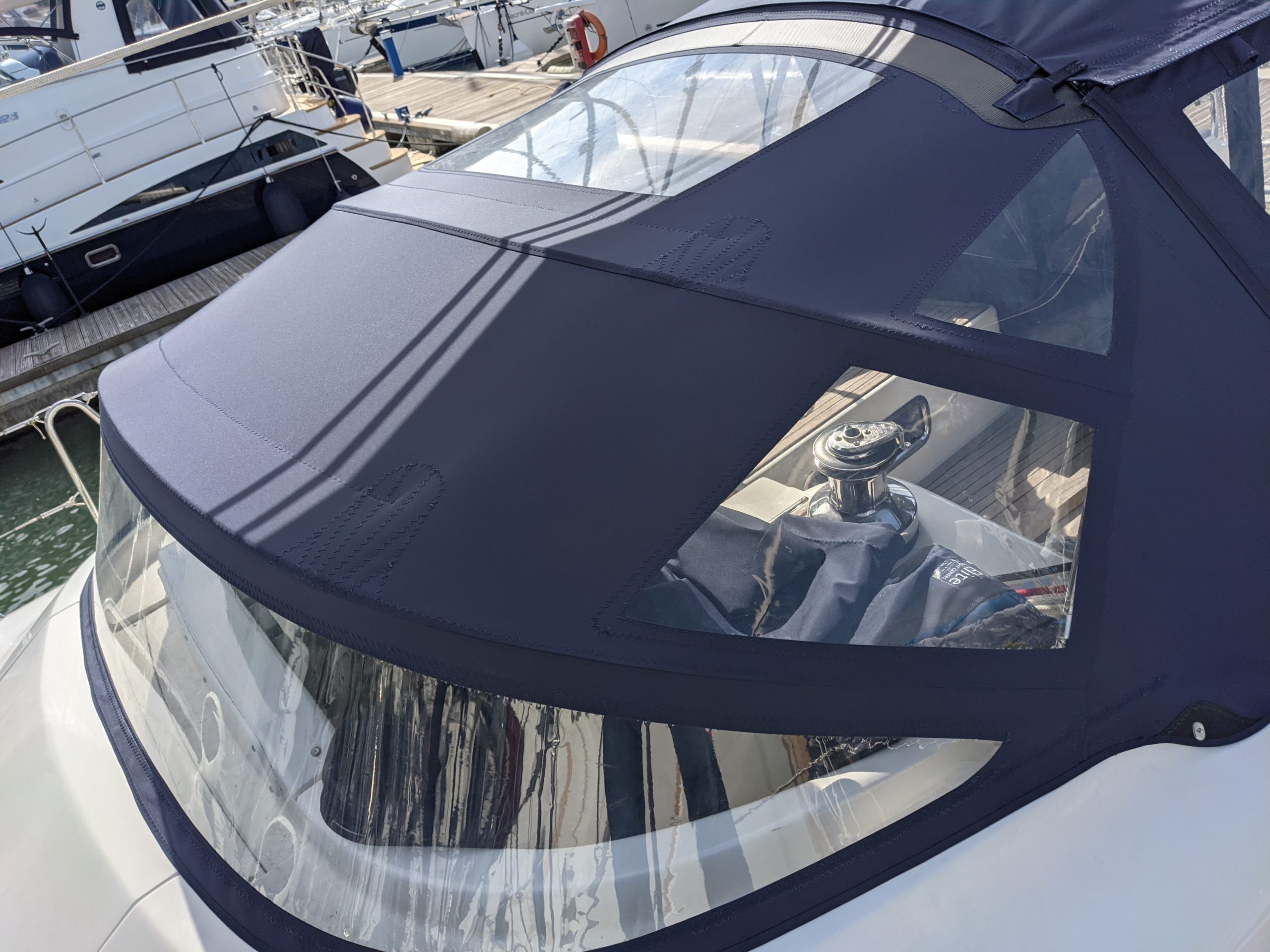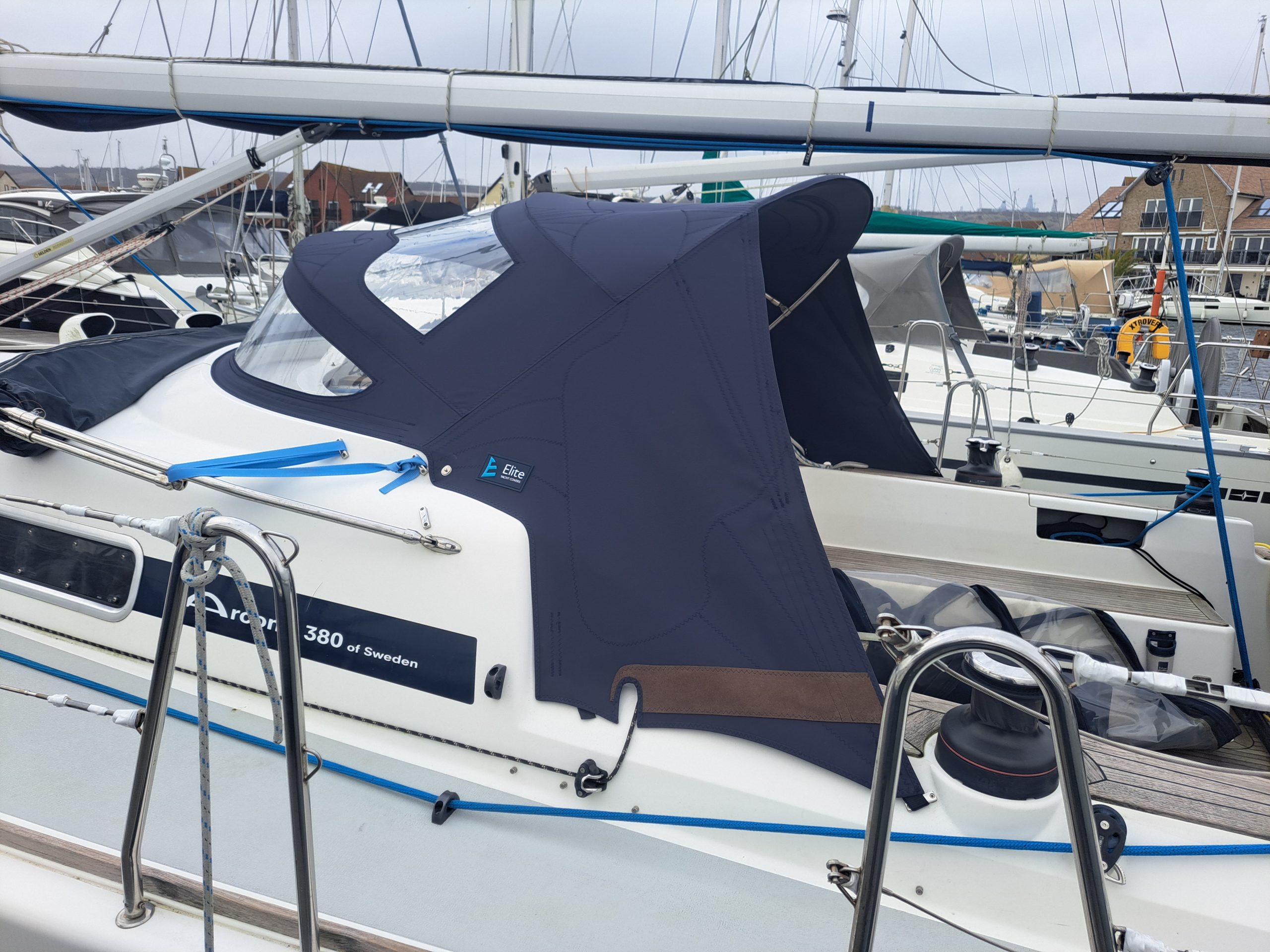 Arcona 380 sprayhood enclosure in WeatherMAX80 Captain Navy