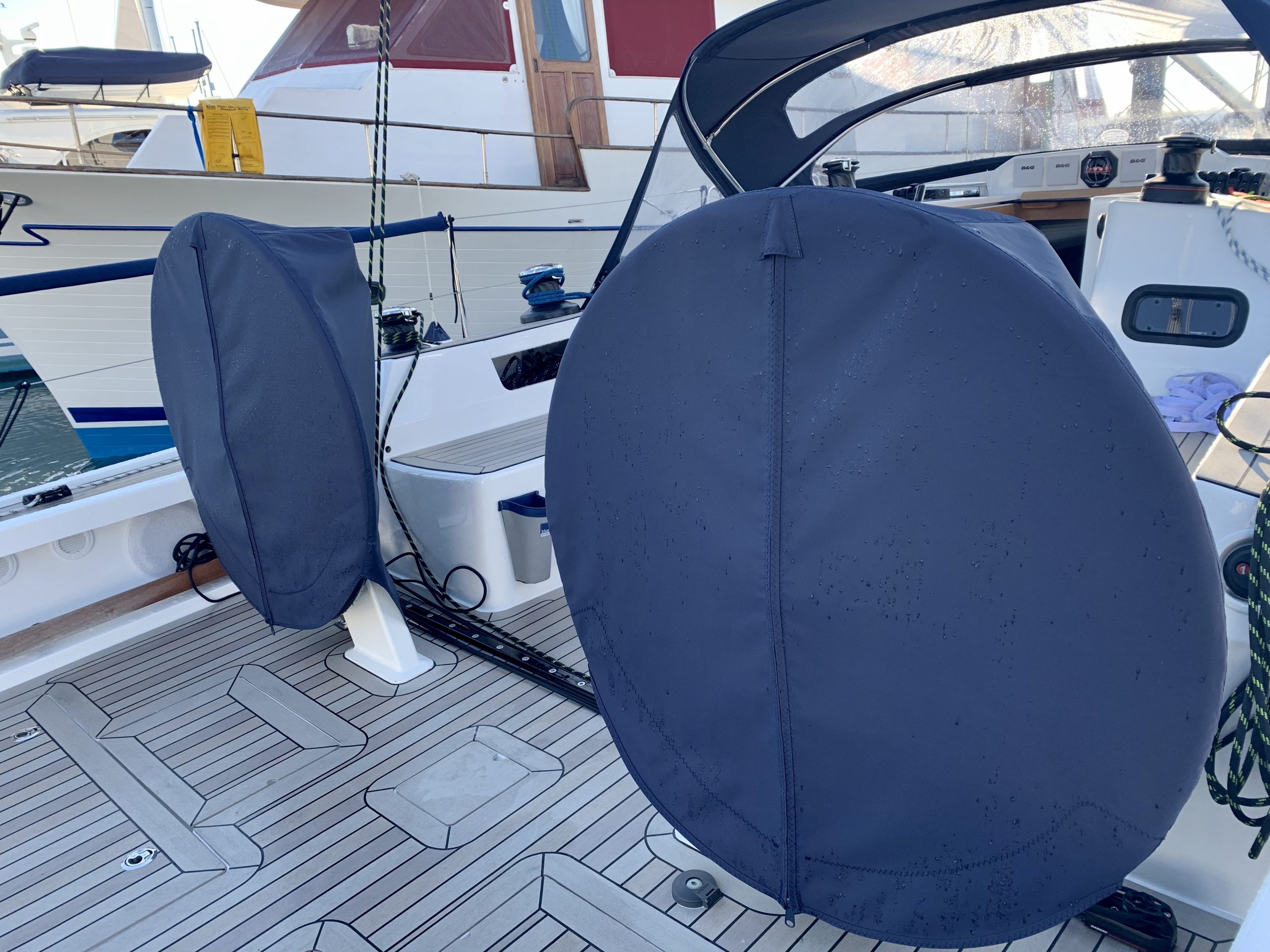 Arcona 435 wheel & pedestal covers in WeatherMAX80 Captain Navy