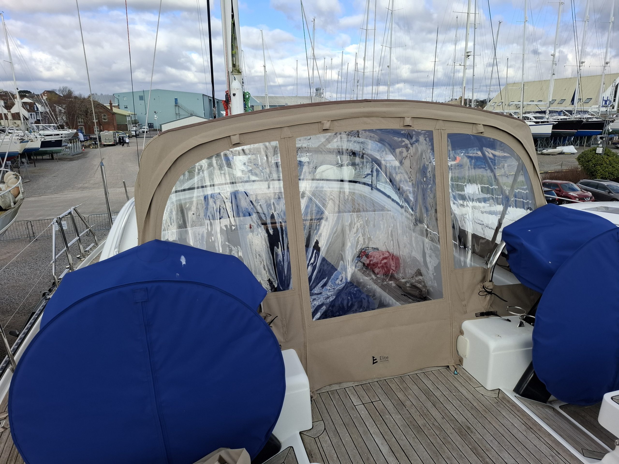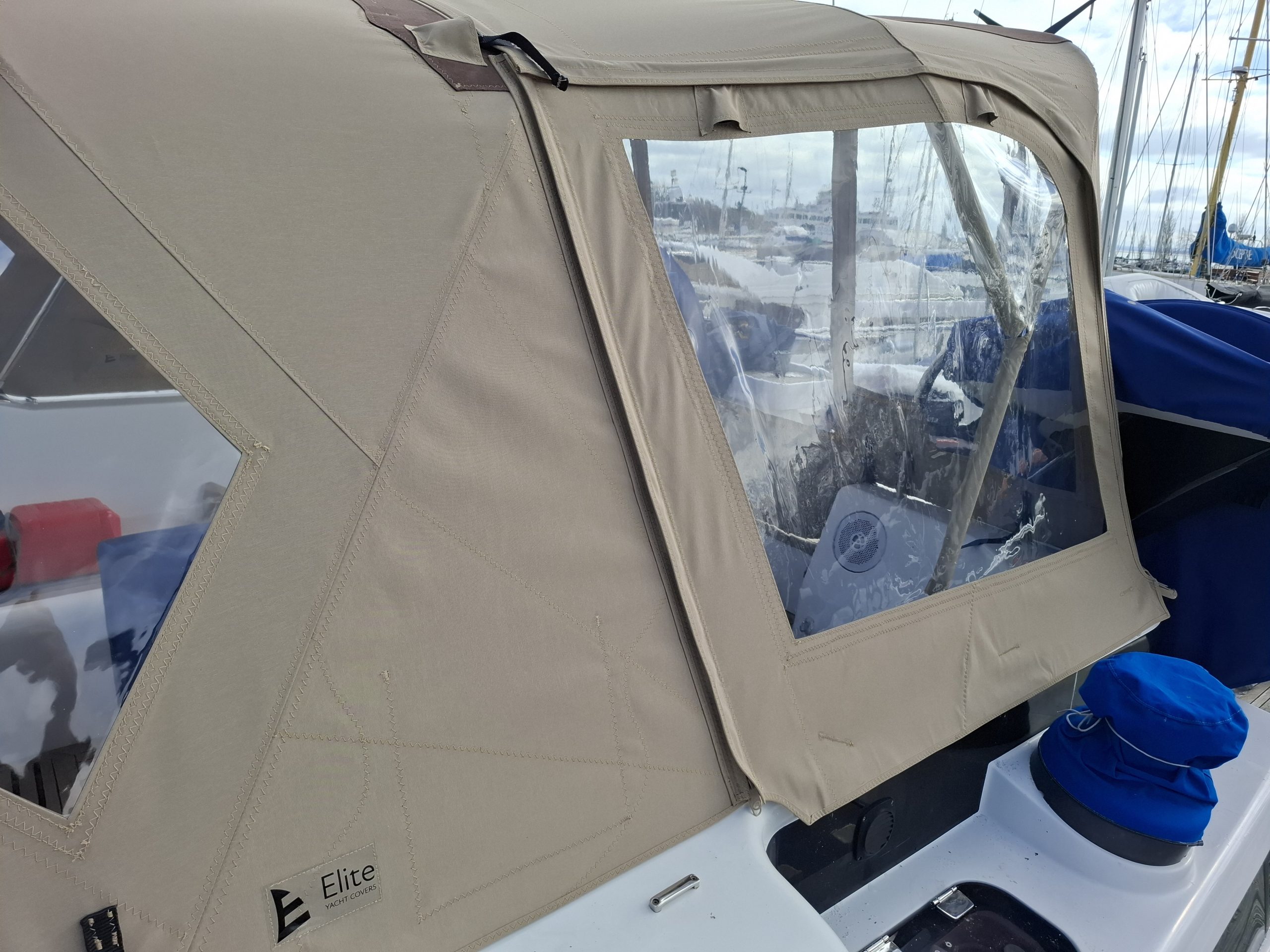 Discovery 57 WeatherMAX80 Sandstone Heather sprayhood enclosure