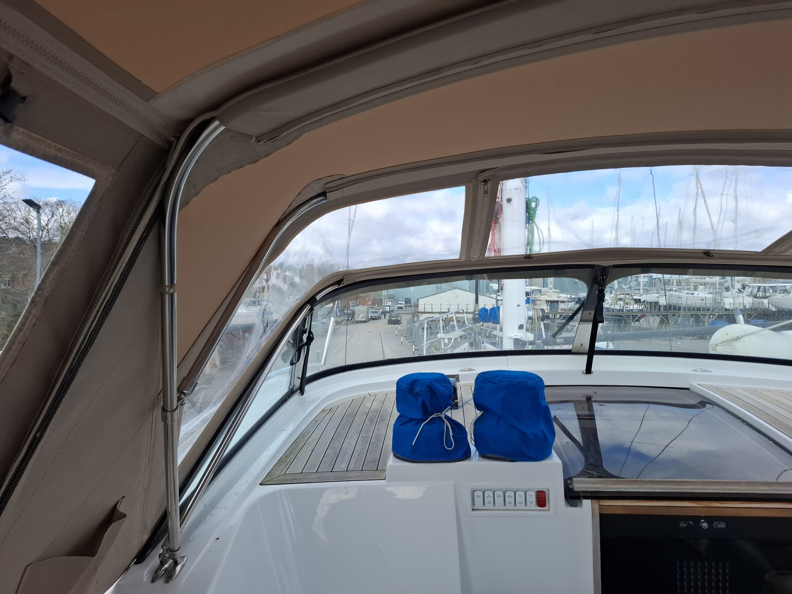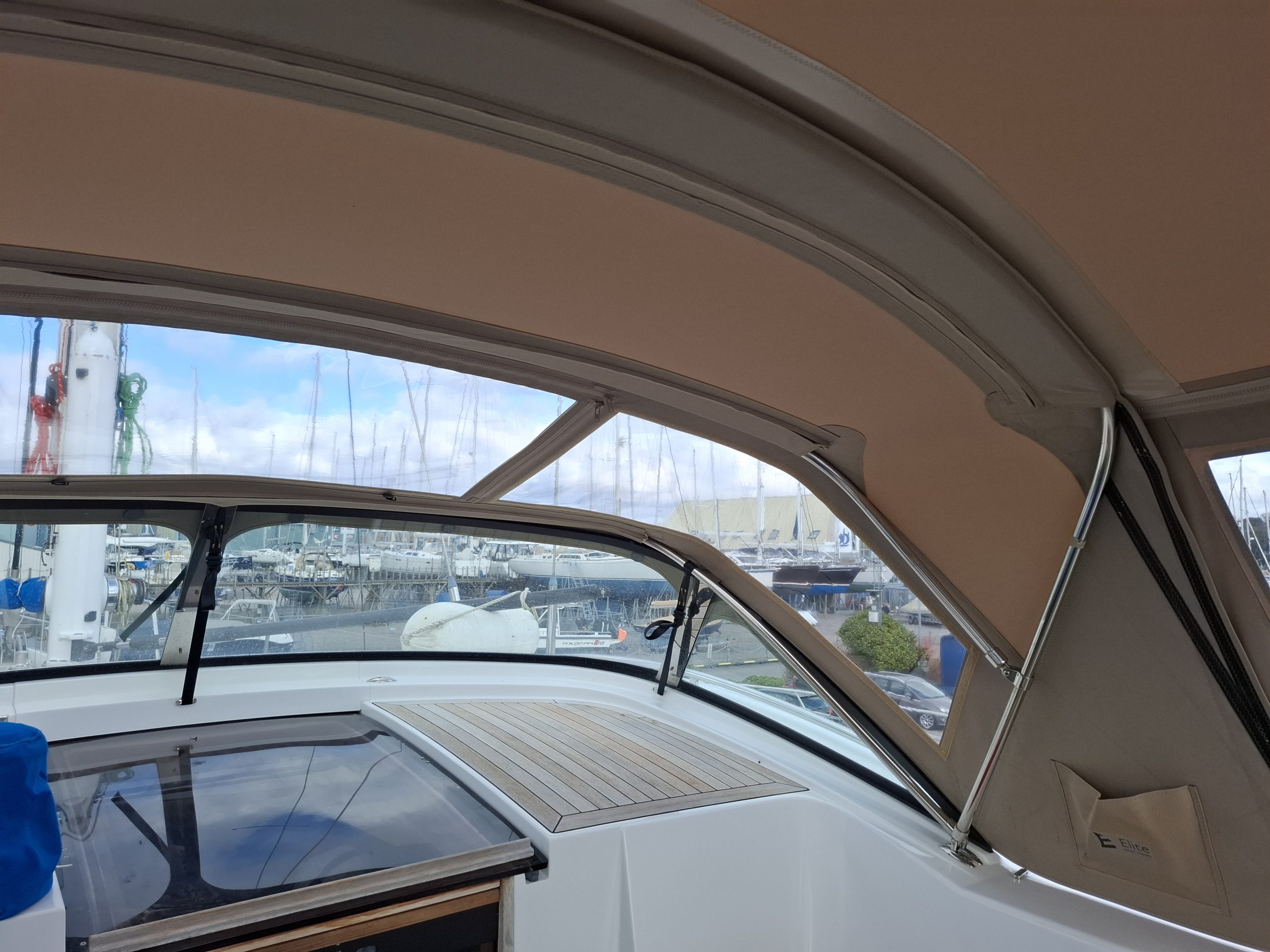 Discovery 57 WeatherMAX80 Sandstone Heather sprayhood interior