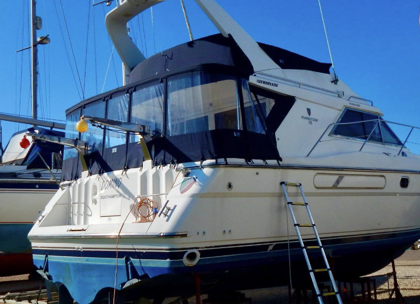 Fairline Phantom 38 Elite Admiral Navy flybridge and enclosure