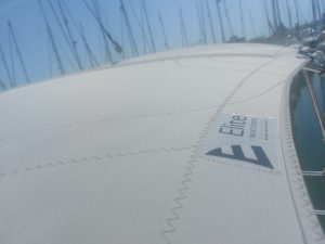 Bavaria 37 sprayhood in Elite9 Caribbean Blue